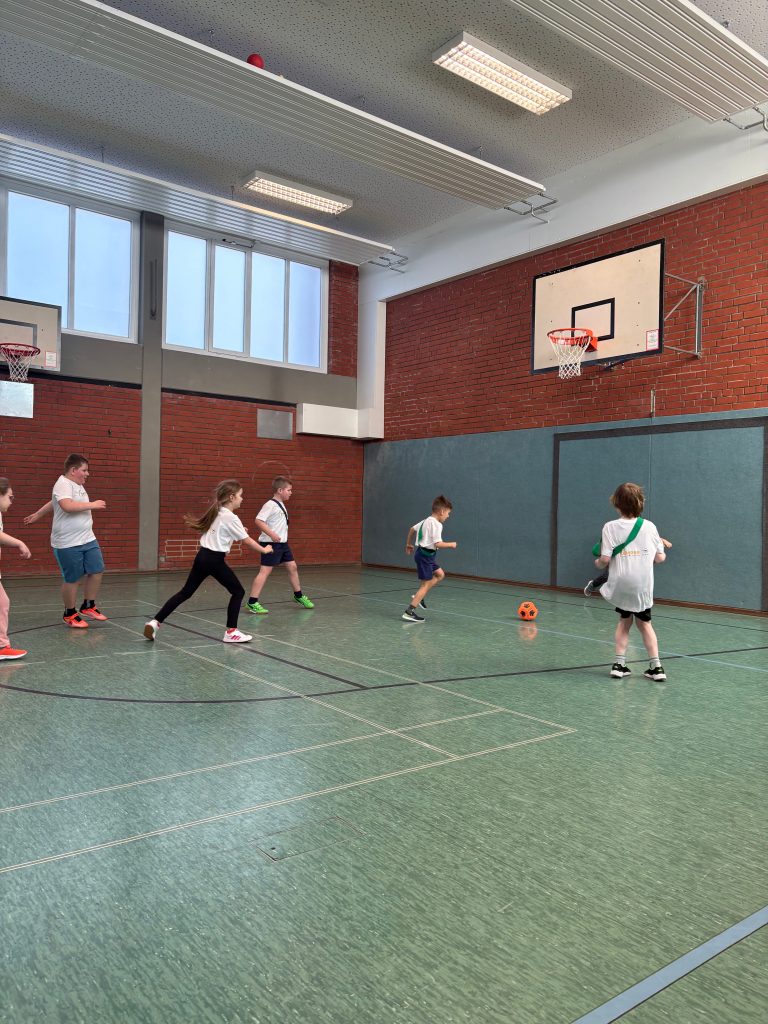Am Montag, den 16.03.2026, waren einige unserer Viertklässler beim diesjährigen Grundschul-Basketballturnier vom TV Meppen. Nach einem gemeinsamen Aufwärmen ging es in die Spiele, in denen alle Kinder ihr Können und Geschick aber auch ihre Teamfähigkeit und ihr Fairplay gezeigt haben.